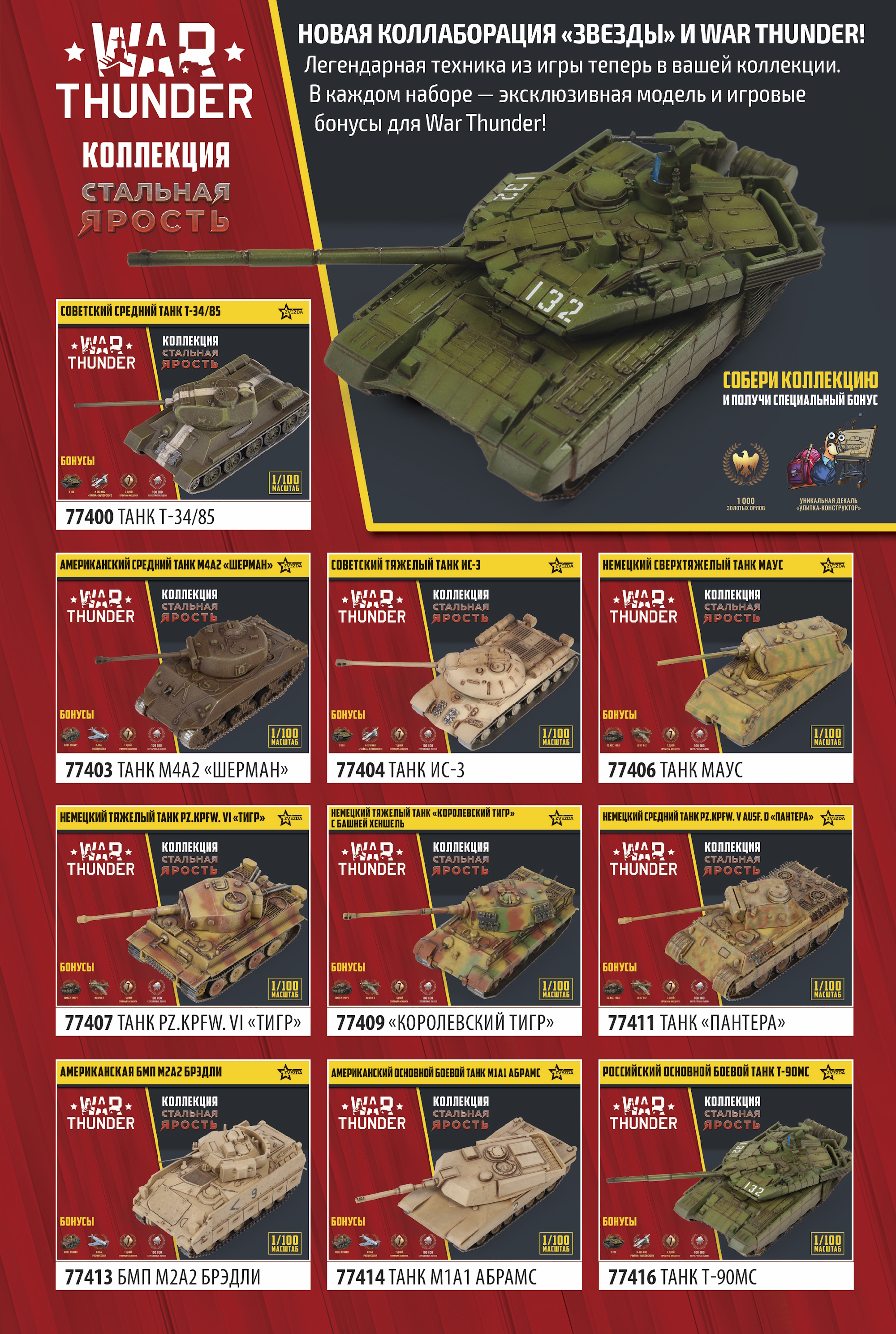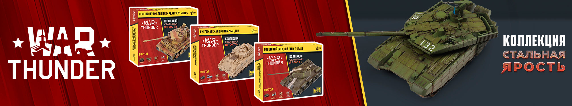 Компания «Звезда» в сотрудничестве с Pixel Storm выпустила серию сборных моделей боевой техники, включающую внутриигровые бонусы в War Thunder! От «Пантеры» и «Тигра» до «Брэдли» и Т-90 МС — сейчас коллекция включает в себя десять моделей техники СССР, США и Германии, собирающиеся быстро и удобно без применения клея!
