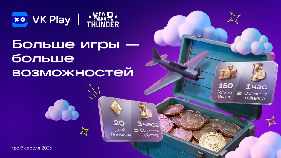 Это самолёт? Это танк? Это War Thunder! Совместно с VK Play подготовили акцию, в которой каждый сможет получить бесплатные часы в облачном гейминге.