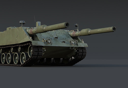 Это первая в игре САУ с двумя пушками, поворот орудий осуществляется корпусом.